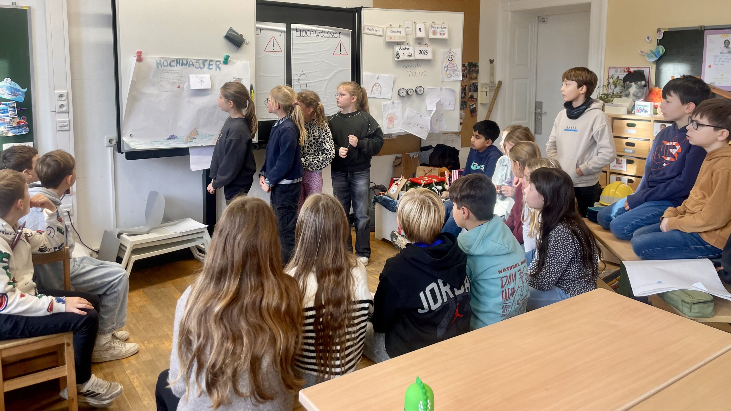 Die 4b hat ihre Klassensprecherinnen und die Vertreterinnen für das Schüler*innenparlament gewählt. Zuvor gab es einen kleinen Wahlkampf: Plakate wurden gestaltet, Ideen vorgestellt und Wahlwerbung gemacht. Am Wahltag konnten alle Kinder geheim abstimmen, wobei die Grundsätze einer demokratischen Wahl eingehalten wurden – so wurde die Wahl zu einer spannenden Erfahrung in Mitbestimmung und Demokratie.